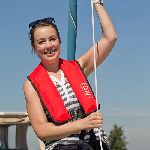 Le gilet de sauvetage Besto 300N est un gilet de sauvetage bien ajusté qui garantit une liberté de mouvement et un confort maximum. La sangle du col maintient le gilet bien en place et soutient de maniÚre optimale votre cou. La ceinture abdominale se ferme au moyen d’une fermeture en acier inoxydable solide et facilement réglable. Lorsque le gilet se gonfle, un sifflet de signalisation et des bandes réfléchissantes apparaissent automatiquement. Dans les 5 secondes qui suivent le contact du gilet de sauvetage automatique Besto 300N avec de l’eau, il se gonfle. Pour plus de sécurité, il y a aussi une commande manuelle, de sorte que le gilet de sauvetage automatique Besto 300N peut également être activé au moyen du cordon.