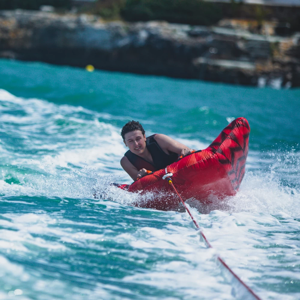 Cette bouée pour 1 personne est l’une des plus rapides du marché. Sautez et volez en toute sécurité avec son intérieur en PVC et sa couche extérieure en nylon rugueux à double couture. L’Hydra à la coupe ultra-radicale, vous permet d’atteindre des vitesses maximales. Son connecteur rapide comme l’éclair vous permet une connexion et un détachement faciles. Tenez-vous bien arrimé aux 2 poignées confortables en néoprène et jouez avec la gravité grâce au Jobe hydra !