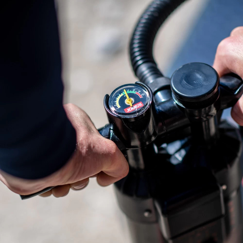 La pompe Jobe Triple Action SUP rend le gonflage de votre planche de SUP encore plus facile ! La pompe a deux cylindres de 3,5 litres, un manomÚtre et une tête universelle (halkey roberts) afin qu’elle s’adapte à toutes les planches de SUP de toutes les marques. Ce qui rend le gonflage avec cette pompe si facile, ce sont les 3 positions dont elle dispose. Utilisez la Double Action sur les deux cylindres pour gonfler rapidement votre SUP à 5 PSI. Utilisez un Single Action sur les deux cylindres pour passer à 10 PSI. Vous pouvez passer au dernier tronçon à 20 PSI avec peu d’effort en utilisant un Single Action sur un cylindre. Vous serez sur l’eau en un rien de temps et vous pourrez profiter de votre SUP !