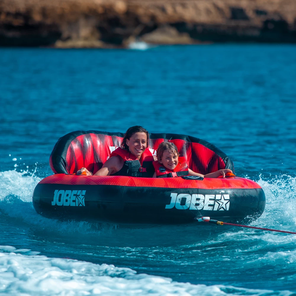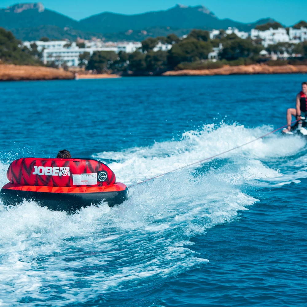 Nous sommes fiers de vous présenter le dernier ajout à notre collection de bouées tractées : le Jobe Proton ! Conçue pour accueillir 3 personnes, cette bouée est fabriquée à partir de nylon 840 denier, ce qui la rend ultra solide et durable. Votre sécurité est importante pour nous, c’est pourquoi nous avons placé l’appuie-tête très haut pour vous garantir un maximum de soutien. Son design fera un malheur sur la plage !