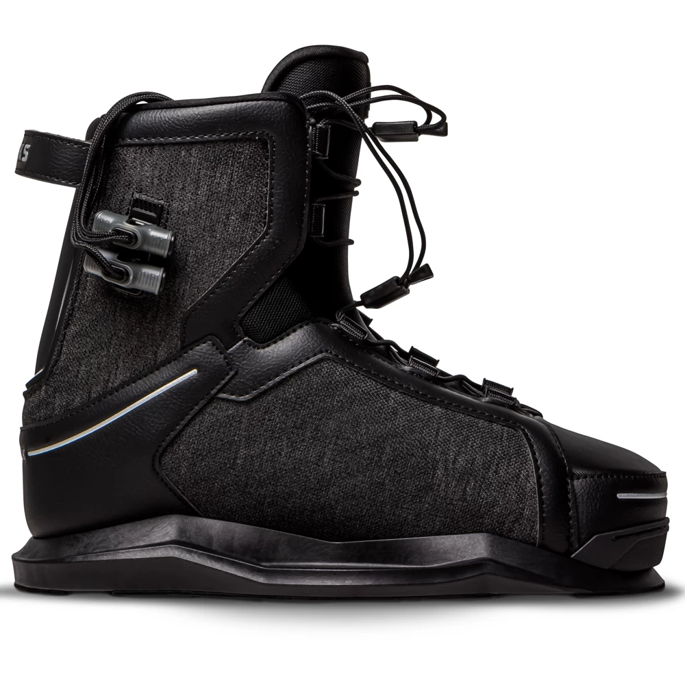 GrĂÂące Ă la languette moulĂ©e en 3D Ă l’avant de la chausse de wakeboard, ainsi qu’aux 2 lacets avec verrouillage automatique, vous pouvez bien tirer la chausse sur votre pied. La semelle classique assure une position plus haute de votre wakeboard. Cela offre un peu moins de sensations et de contrĂĆœle avec votre wakeboard, mais est Ă©galement plus indulgent.
