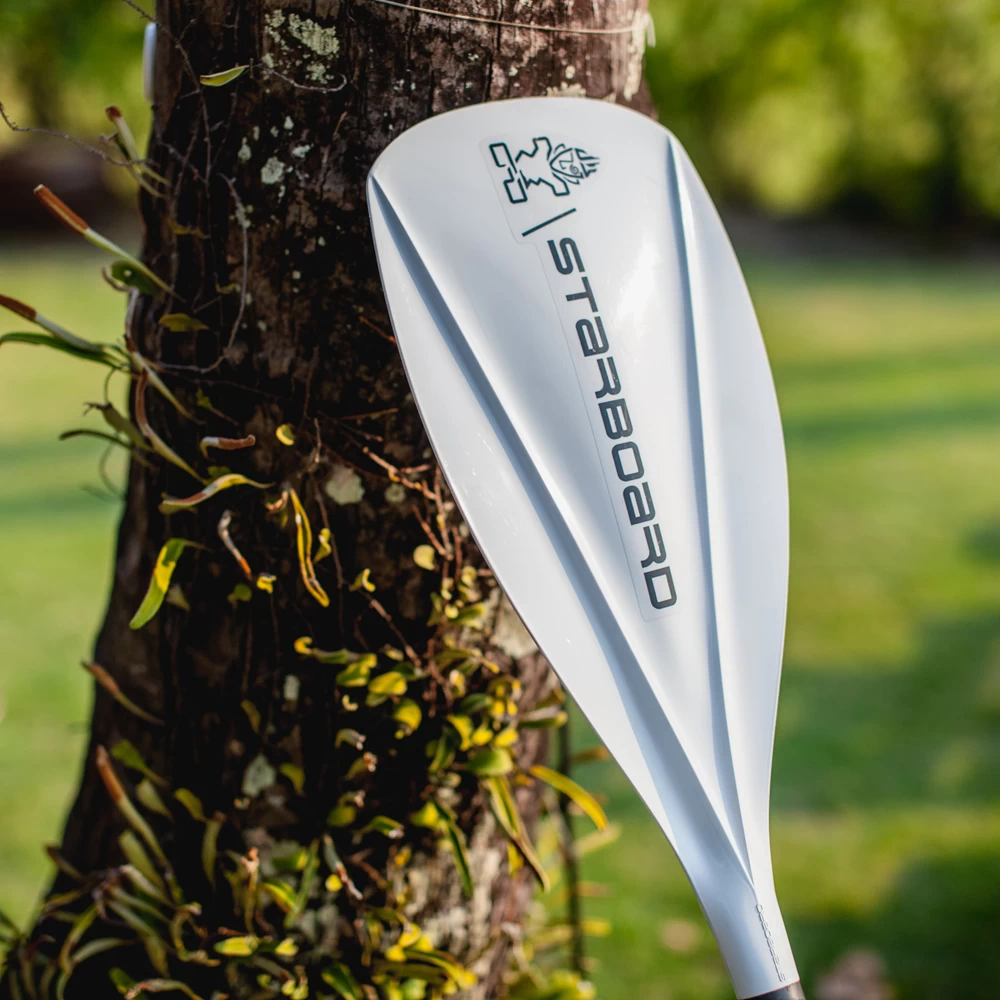 La pagaie sup Starboard Lima Tufskin blanc 2 piÚces est une excellente pagaie avec la particularité : une rigidité élevée et un poids réduit.